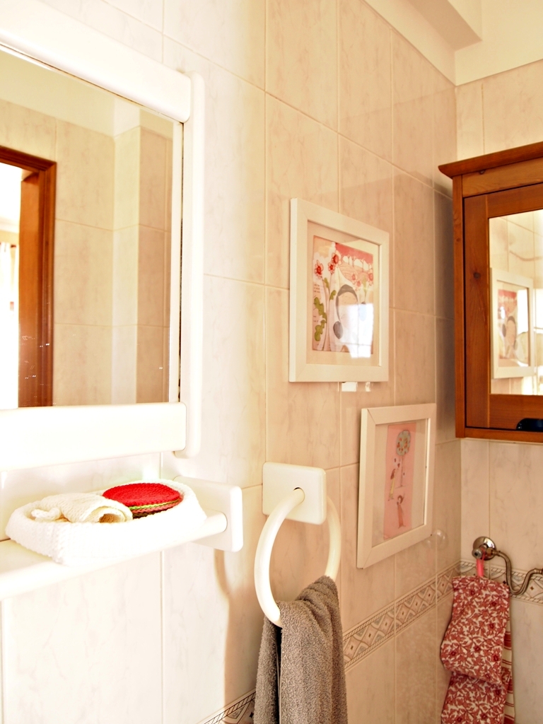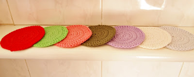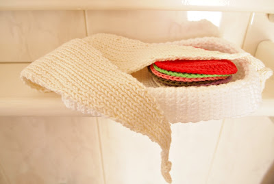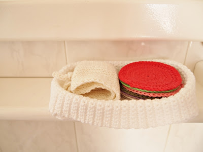 A minha amiga e colega geóloga Ana faz coisas muitas giras em crochet (por exemplo, o pequeno cesto branco que está na primeira foto deste post foi ela que fez). Ontem, recebi um conjunto de sete discos para limpeza facial, uma fita para o cabelo e uma daquelas redinhas para a máquina de lavar roupa, tudo muito bem organizado dentro de um pequeno cesto que cabe perfeitamente na minha pequena prateleira da casa de banho. Está o máximo, não acham?