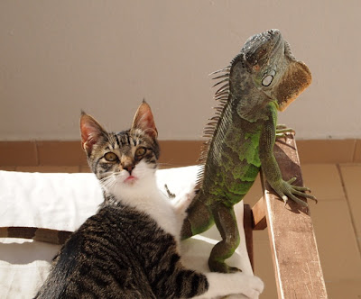 E por fim, dois dos meus três gatos e a iguana. Inseparáveis!