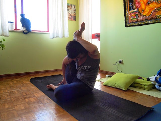 É sempre assim que acaba a minha prática de yoga. Gatos em cima das minha pernas durante o relaxamento final...
