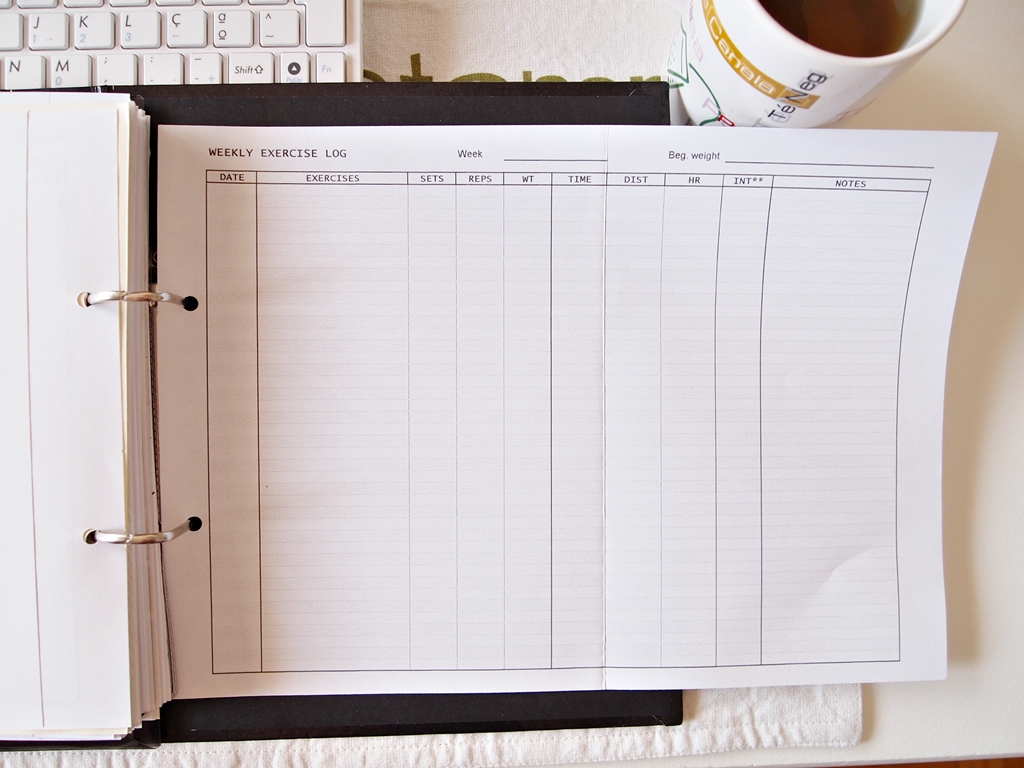 A última secção da minha agenda pode não fazer sentido para outras pessoas, mas para mim é importante – é o registo semanal do exercício físico que faço. Mais uma vez, é um simples template do site www.vertex42.com.