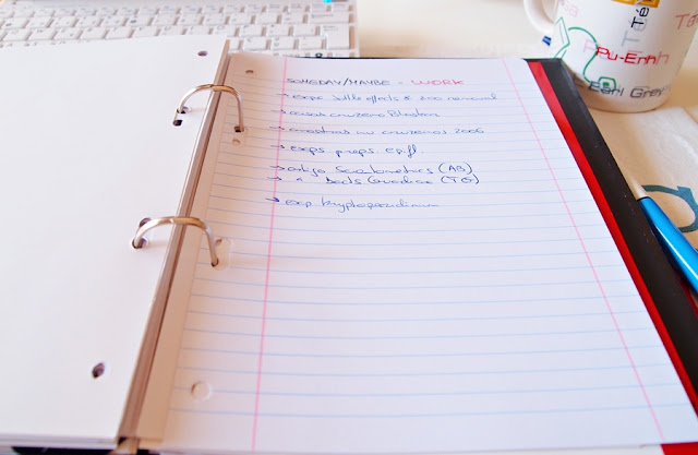 Apercebi-me então que precisava de uma ferramenta onde pudesse planear toda a minha vida. Tudo, desde o trabalho de laboratório e o trabalho ao computador, as idas ao ginásio, os livros para ler, os arranjos para fazer em casa, até às ideias para o blog e projectos de costura. Um único sítio que agregasse todos os aspectos da minha vida e assim me permitisse uma melhor gestão do meu tempo. Foi então que descobri o método Getting Things Done.