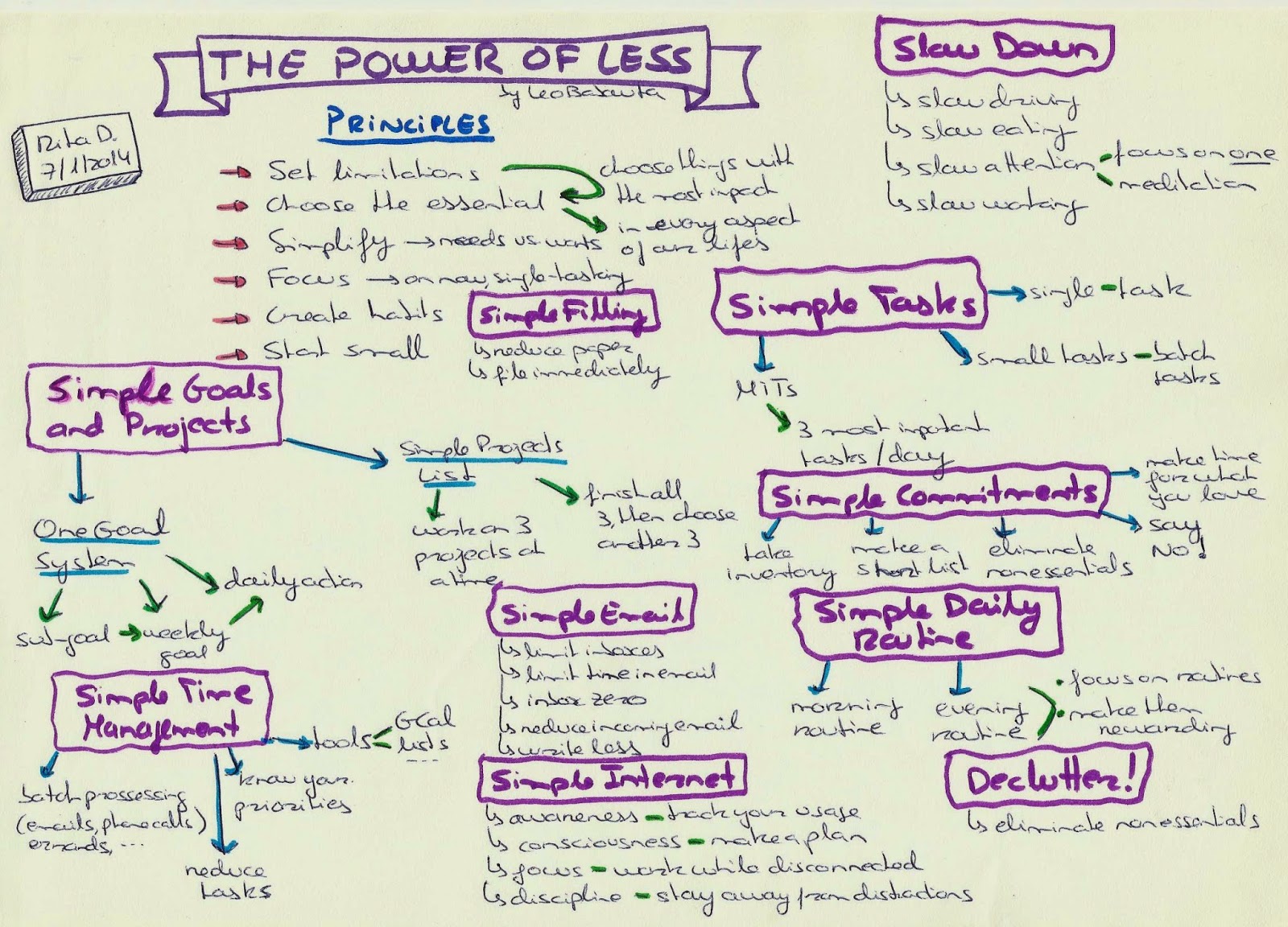 Zen To Done, que é uma simplificação do GTD misturado com outros sistemas de produtividade. Eu gosto. A imagem acima é uma folha que tenho na minha agenda, para me guiar quando estou perdida...